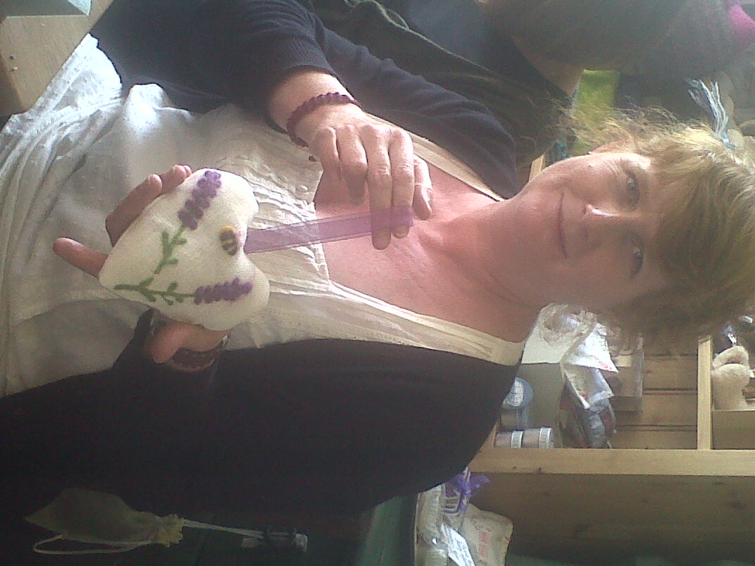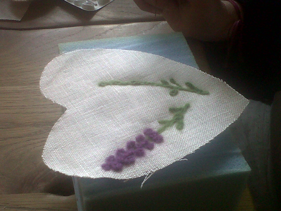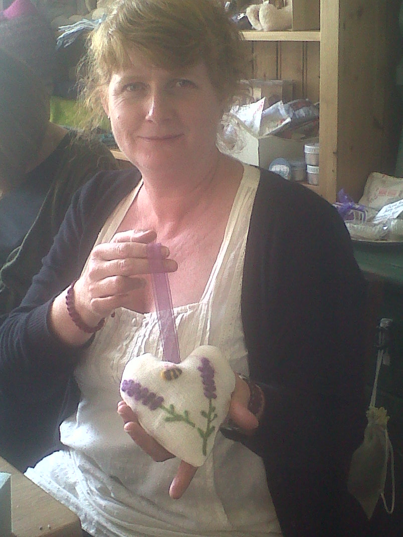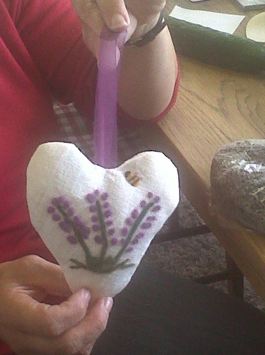 And the first lavender heart of the day was finished.We all loved the little bee.