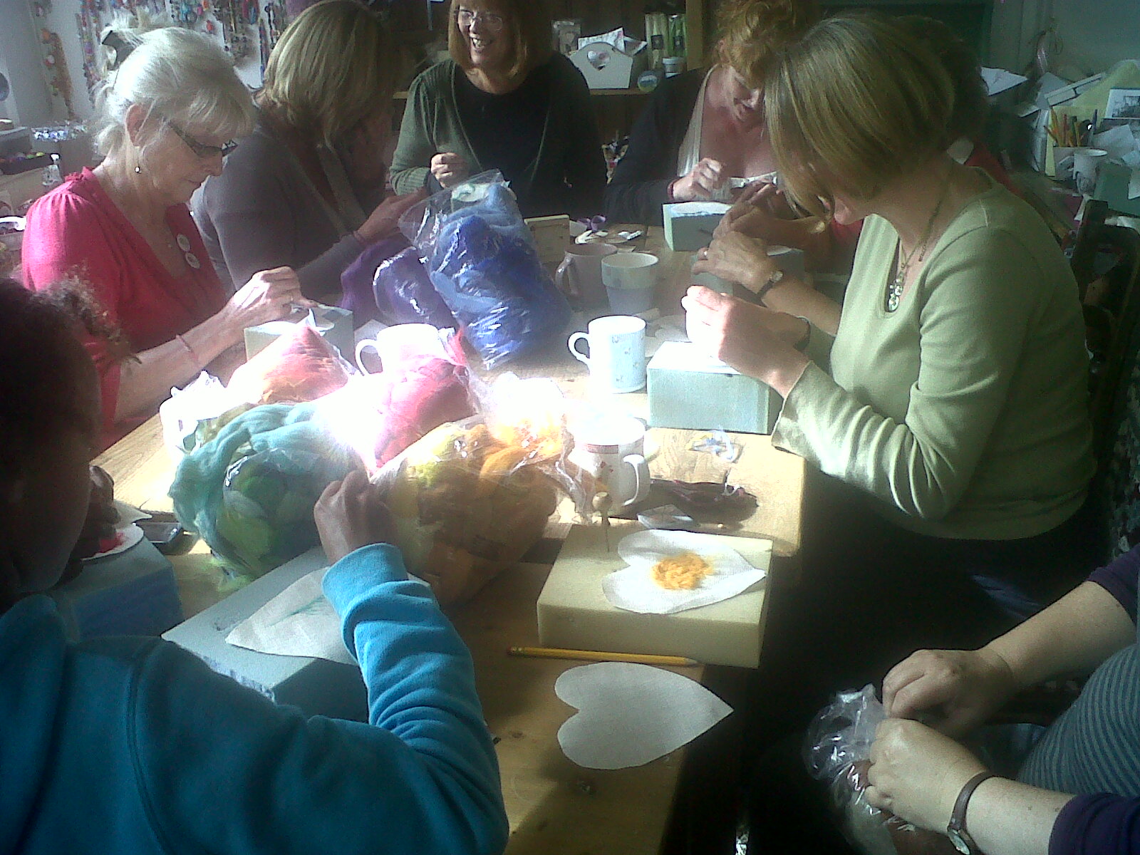 What better way to end a stressful week than with some needle felting. Oh, the rhythm of stabbing small particles of fibre cannot be beaten. Add to that a handful or two of lavender and you have the perfect afternoon. So that is just what we did on Saturday afternoon.