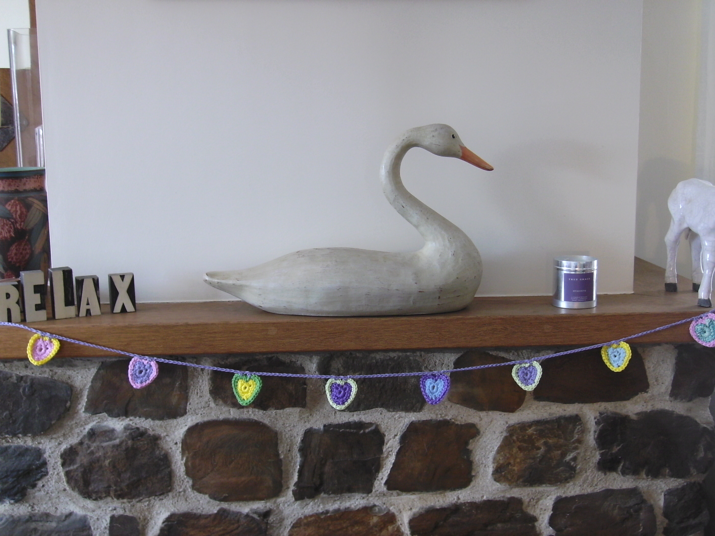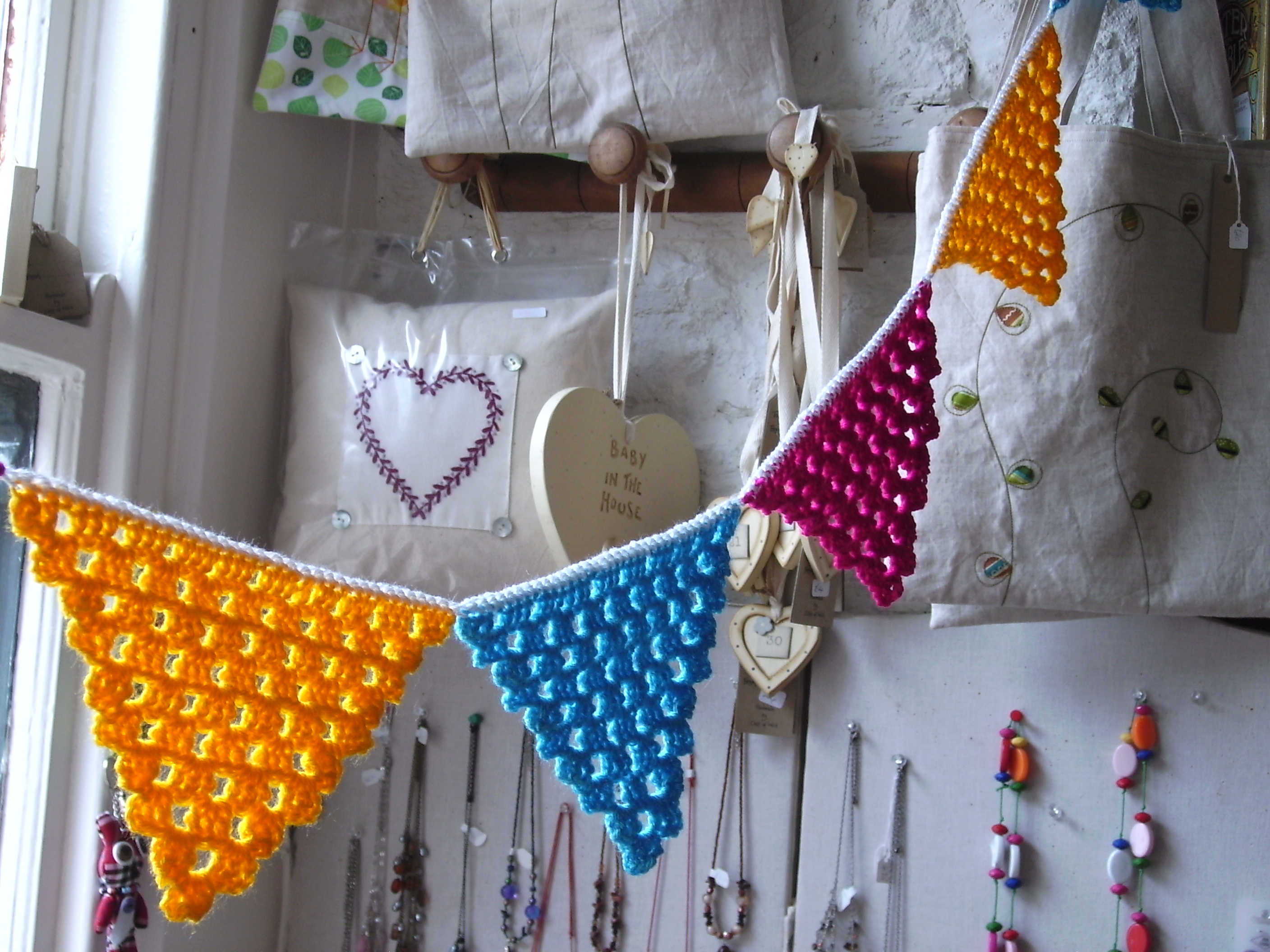I have been crocheting some little heart bunting over the weekend for the shop. It was fiddly trying to work out how to form the heart, but I think these look very pretty now.